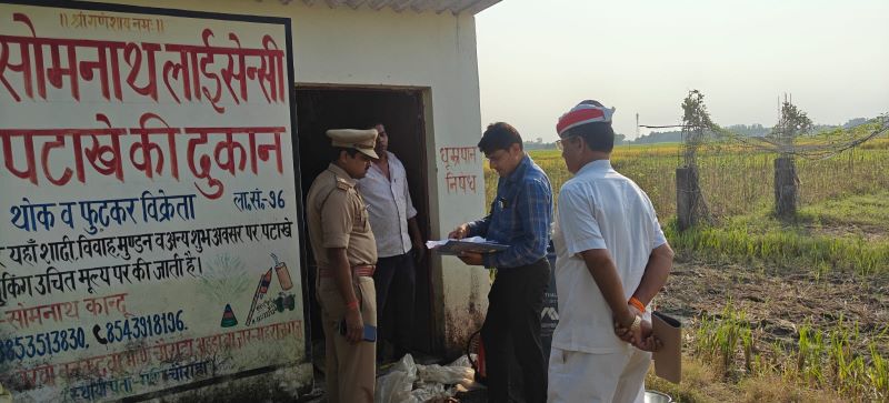 नौतनवा में एसडीएम नवीन कुमार की अगुवाई में कई पटाखा दुकानों पर छापेमारी